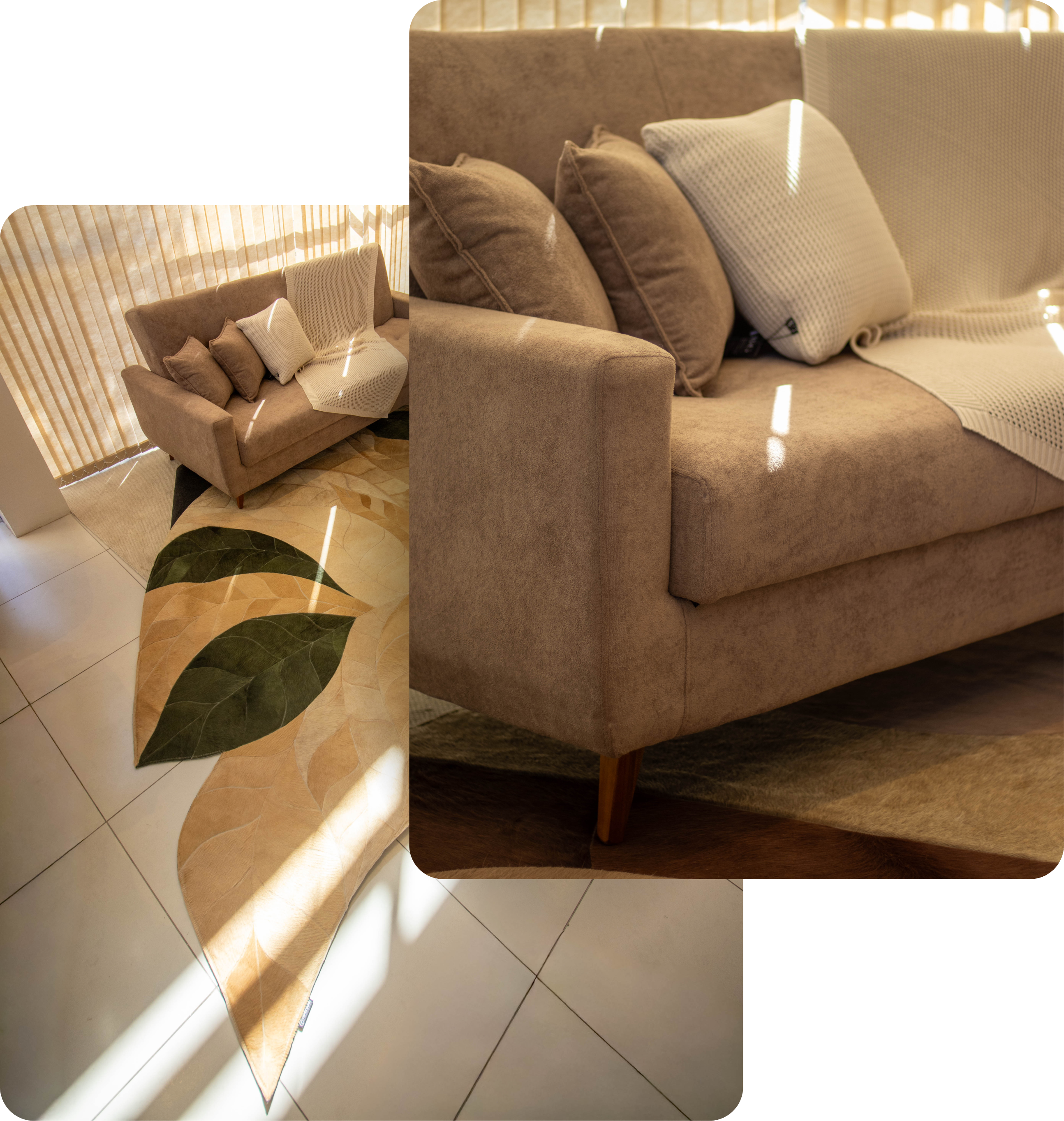 Ele conecta móveis, traz harmonia, aquece o espaço e faz o ambiente parecer pronto. Pronto de verdade.